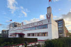 lichtelijk vervallen hoofdgebouw van de v/m psychiatrische instelling