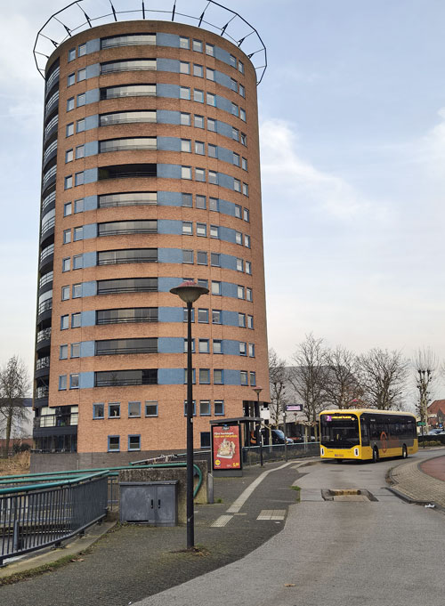 Daarna voert zijn weg langs hoge flats, de Sporthal Zielhorst en
