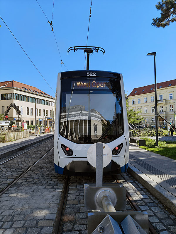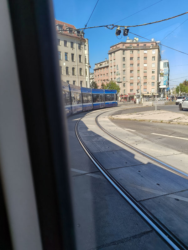 Wenen, door de straten rijdt als een gewone stadstram. We passeren het station,