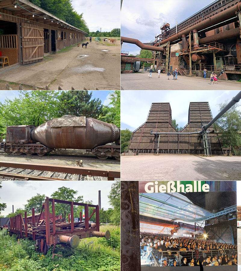 Het hele hoogovencomplex zelf zie je op de panoramafoto op Wikipedia beter dan op de foto’s die ik zelf gemaakt heb. Op mijn collage staat linksboven een kinderboerderij bij een oude schuur. Dat buikige ijzeren ding op de foto daaronder lijkt wel de atoombom die Hitler gelukkig nooit in handen heeft gekregen.