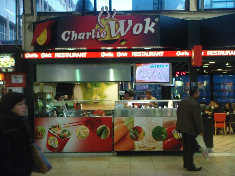 Hoe zal ik Charlie Wok, ook wel: Charlie Chiu’s, omschrijven? Het zelfbedieningsrestaurant is gesitueerd in de stationshal van Utrecht Centraal, of liever gezegd: in de doorgang van die hal naar het winkelhart Hoog Chagrijne. Aanloop heb je daar wel; het zal ongeveer het drukste voetgangersgebied van Nederland zijn.