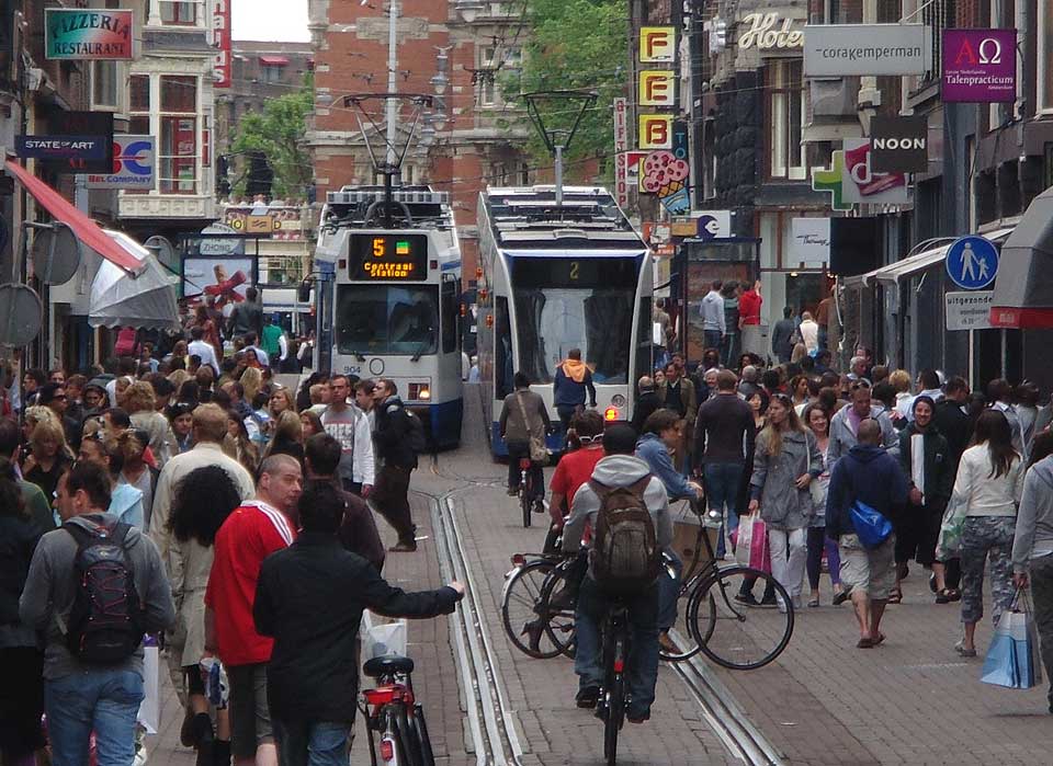 Zaterdagmiddagdrukte op de Leidsestraat in Amsterdam (20 juni 2009)