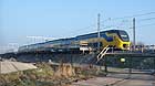 Sprinter op station Hillegom tussen de bollen. 25 april 2011.