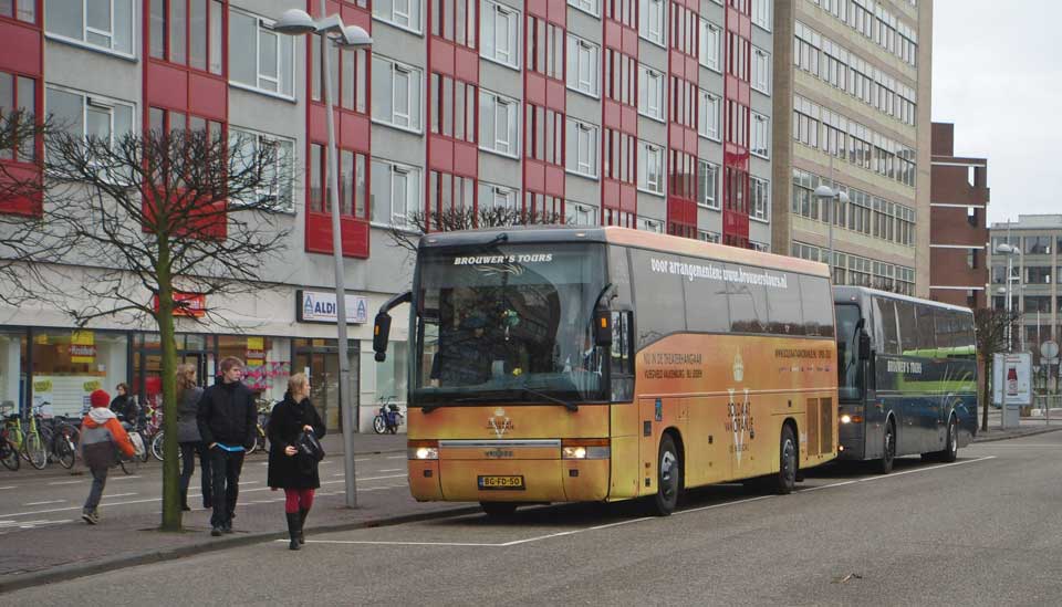 Voorlopig rijdt Brouwer's Tours een pendeldienst vanaf Leiden Centraal, i.v.m. Soldaat van Oranje. 5 februari 2011.