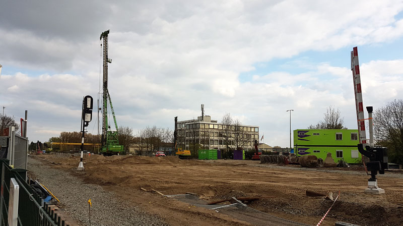 aanbouw staan leeg. Voorbij het station in aanbouw kromt de verlaten