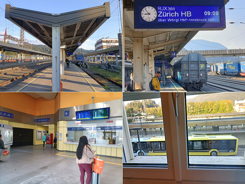 De Railjet helemaal naar Zürich komt meteen voorrijden als ik het perron van Kufstein op stap– meer geluk dan wijsheid;