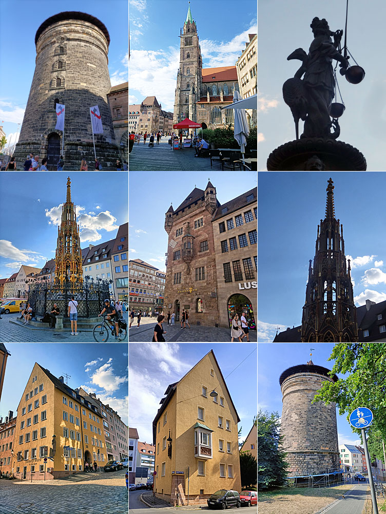 Het centrum van Neurenberg geeft fotografen werkelijk het volle pond. Het is min of meer een rechthoek van 1 bij 1,4 km en staat helemaal vol met monumenten. Als ik niet beter wist, zou ik het een goed geconserveerde middeleeuwse stad noemen, met alles erop en eraan: kasteel, eeuwenoude kerken, vakwerkhuizen en stadsmuren met waltorens.