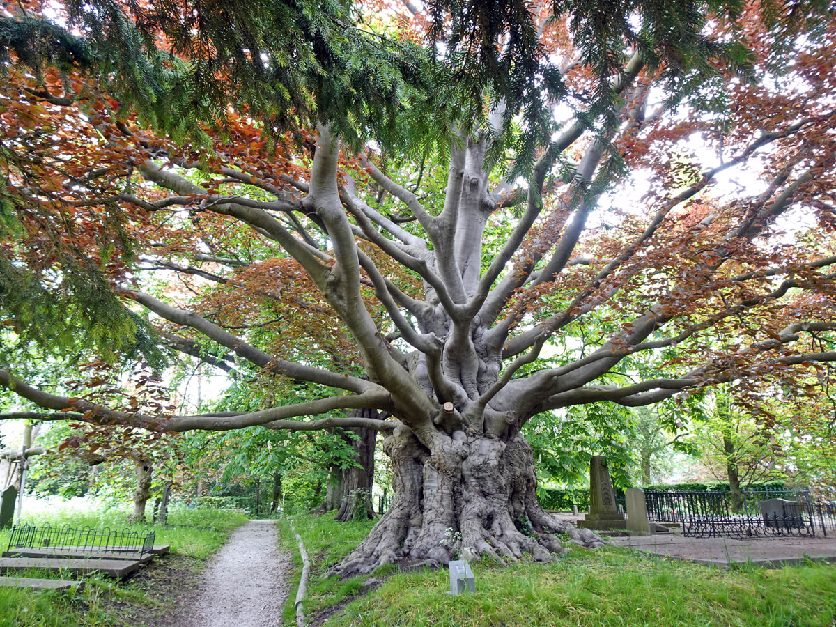 Deze eerbiedwaardige oude bruine beuk staat hier