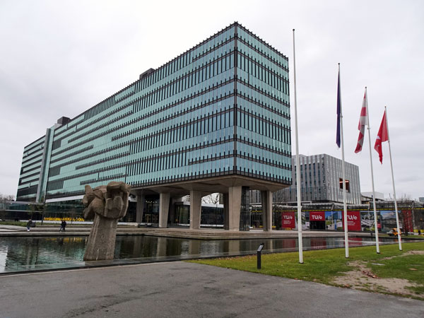 Delft Campus. Een duidelijk geval van een vlag op een modderschuit. Ik vraag me