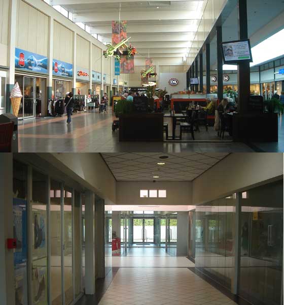 Ga je een paar glazen deuren door, dan ontrolt zich aan je ogen een giganteske hal met minstens evenveel koopplezier als buiten. Hoe kan dat? Je zit hier vlak bij een grote stad met een uitgebreid winkelhart. En de woonboulevard is 10 minuten vliegen per Volans. Hoe houden ze hier het hoofd boven water met die concurrentie? Blijven de mensen dan maar kopen? Het geld moet toch een keer op zijn? Ze kunnen elke euro toch maar één keer uitgeven?