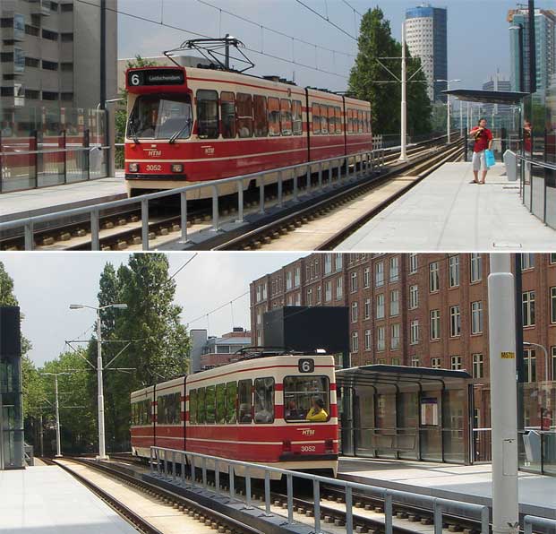 Later deze middag zullen we weer een foto nemen van mensonterende taferelen bij de tramhalte van lijn 9 naast Den Haag CS, hoewel het nog niet eens echt gunstig strandweer is, in deze zomer die zijn kruit te vroeg lijkt te hebben verschoten. Maar daaruit moet je niet opmaken, dat lijn 9 louter een lijn is voor strandbezoekers. De route voert dwars door een groot kantorenareaal. Ook het spitsvervoer op deze lijn is dagelijks een hel. En dan ligt op de route nog wel het Ministerie van Verkeer en Waterstaat, waar al het geld verdeeld wordt voor die mooie prestigeprojecten. Deze keer hadden de ambtenaren wel iets minder onkreukbaar mogen zijn dan gewoonlijk, en enkele tientallen miljoenen euro’s mogen uittrekken voor een doorkoppeling van de Randstadrail naar Scheveningen; voor hun eigen gemak en belang.
