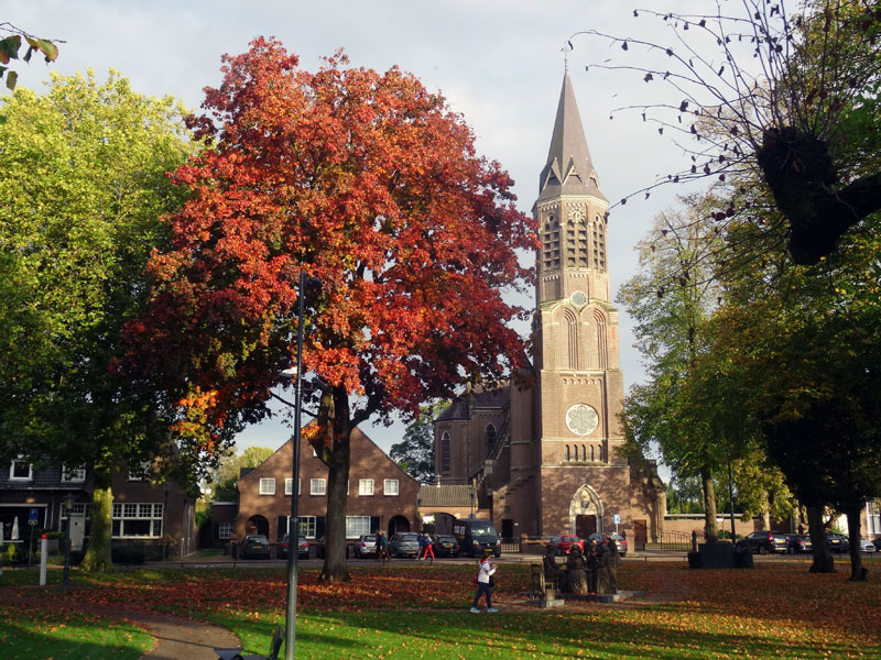 In het hart van Nuenen vertoont het park aangename herfsttinten en wordt het beschenen door een flauw late-middagzonnetje. Bij ‘De Aardappeleters’ in brons staat een familie selfies te maken. Dat was de gruwel van de tegenstanders van deze beeldengroep (‘Straks gaan ze nog selfies maken bij de Aardappeleters!!’). Maar wat is erop tegen? Het is, net als dat fietspad, een stukje Van Gogh-beleving.