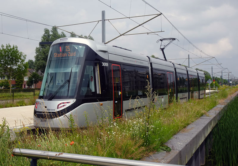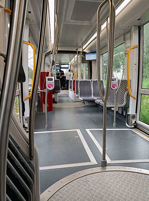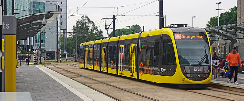 de gloednieuwe Urbos-tram naar Nieuwegein, die daar over een geheel