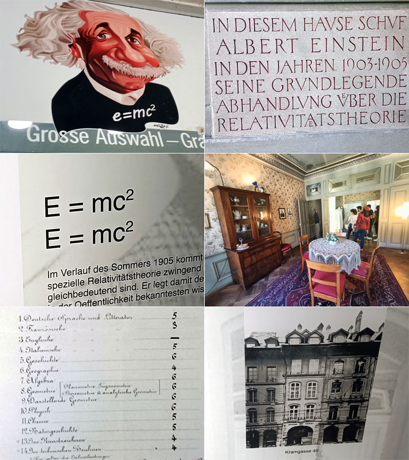 Van 1903 / 1905 woonde hij met zijn vrouw Mileva op een bovenwoning aan de Kramgasse, 200 meter voorbij de Zytglogge. In dat huis schreef hij in 1905 5 artikelen die elk de natuurkunde op haar grondvesten zouden doen schudden. Waaronder dat over de speciale relativiteitstheorie, waarin tijd zo’n belangrijke rol speelt.
