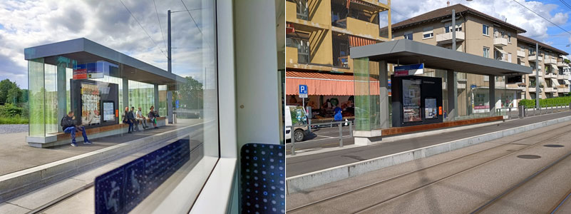 Bij dat vliegveld beginnen nu 2 tramlijnen, 10 en 12, die een stukje gelijkop gaan. Lijn 10 rijdt na het traject van Glatttalbahn de binnenstad in, passeert de al genoemde halte Milchbuck en heeft zijn eindpunt bij het hoofdstation. Lijn 12 gaat naar station Stettbach, het punt waar ik aangeland ben met lijn 7.